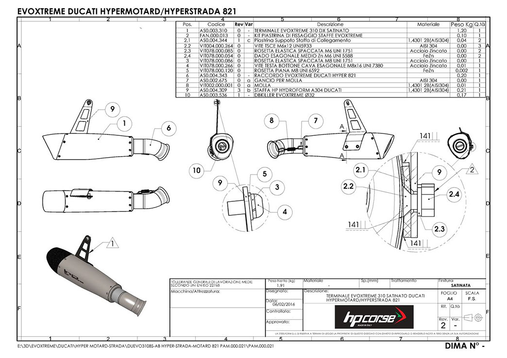 新型EVOXTREMEエキゾーストを極めてエキサイティングなものにする美的特徴の一つは、接続部に向かって細くなるサイレンサーの不規則な形状です。