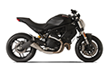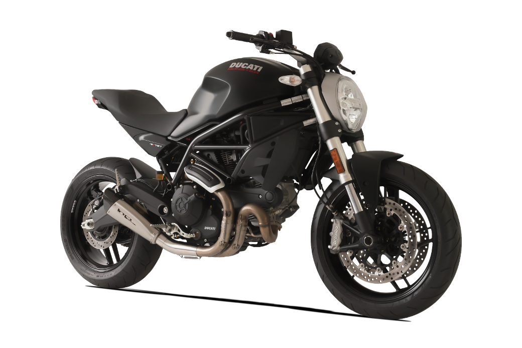 Evoxtreme Satin シングルローマウントサイレンサー(260mmライン、カーボンエンドキャップ付き)+ 純正DUCATI MONSTER 797ヘッダー用リンクパイプ(非レース承認サイレンサー)