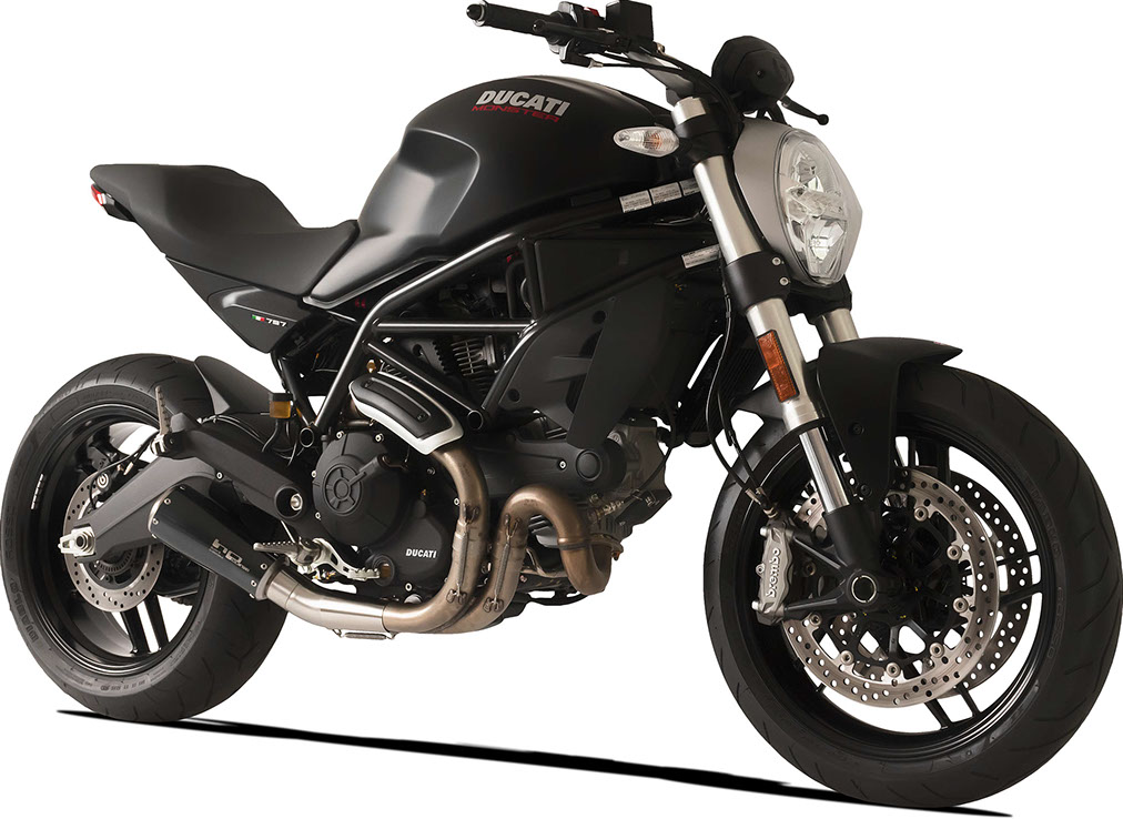 GP07 サテンブラック シングルローマウントマフラー(DBキラーバージョン、アルマイト加工アルミリング付き)+ 純正DUCATI MONSTER 797ヘッダー用リンクパイプ(レース用ではありません)
