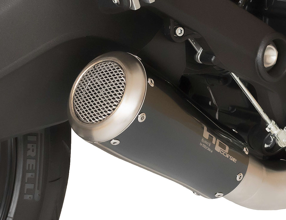 GP07 サテンブラック シングルローマウントマフラー(DBキラー、メッシュバージョン)+ 純正DUCATI MONSTER 797ヘッダー用リンクパイプ(非レーシングマフラー承認済み)