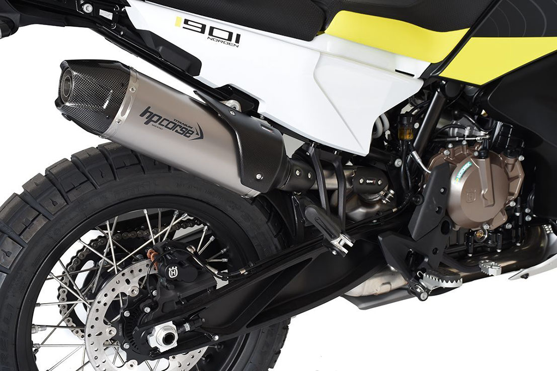 HP CORSE は、この反抗的な HUSQVARNA に 3 種類の異なる排気装置を用意しました。