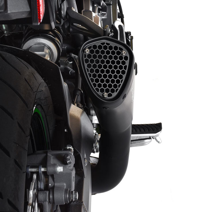 エンドキャップも同様で、排気口部分には金属製グリルが組み込まれており、よりアグレッシブな印象を与えます。