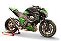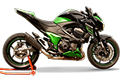 Evoxtreme シングル ロー サテンブラック サイレンサー (310mm ライン、カーボンエンドキャップ付き) + 純正コレクター用リンクパイプ - KAWASAKI Z800 2013-2015 (サイレンサーは指令 97/24/CE-2006/120/CE cap.9 に準拠して承認されています)