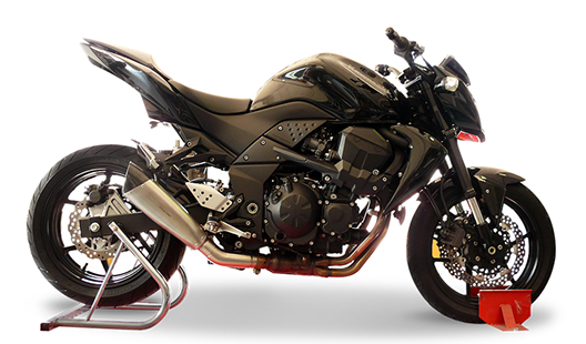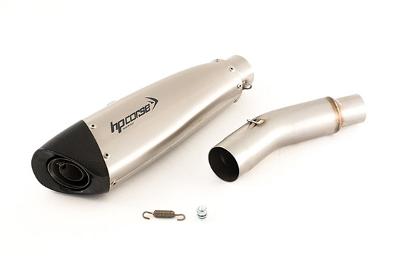 Evoxtreme サテン シングル ローサイレンサー (310mm ライン、カーボンエンドキャップ付き) + 純正コレクター用リンクパイプ KAWASAKI Z750/R 07-14 (サイレンサーは指令 97/24/CE-2006/120/CE cap.9 に準拠して承認されています)