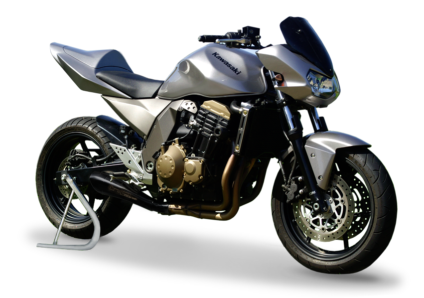 ハイドロフォームブラックセラミックコーティングサイレンサー(指令97/24/CE-2006/120/CE cap.9承認)シングルロー+リンクパイプ(純正コレクター用) - カワサキ Z750 2004-2006
