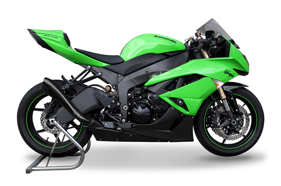 ハイドロフォーム製ブラックセラミックコーティングサイレンサー(指令97/24/CE-2006/120/CE cap.9承認)シングルロー+リンクパイプ(純正コレクター用) - カワサキ ZX-6R 600 2009-2015