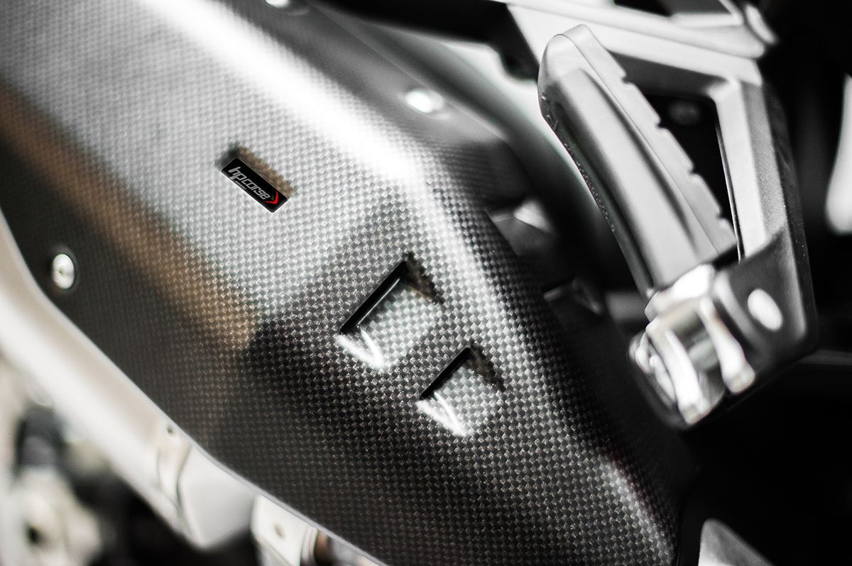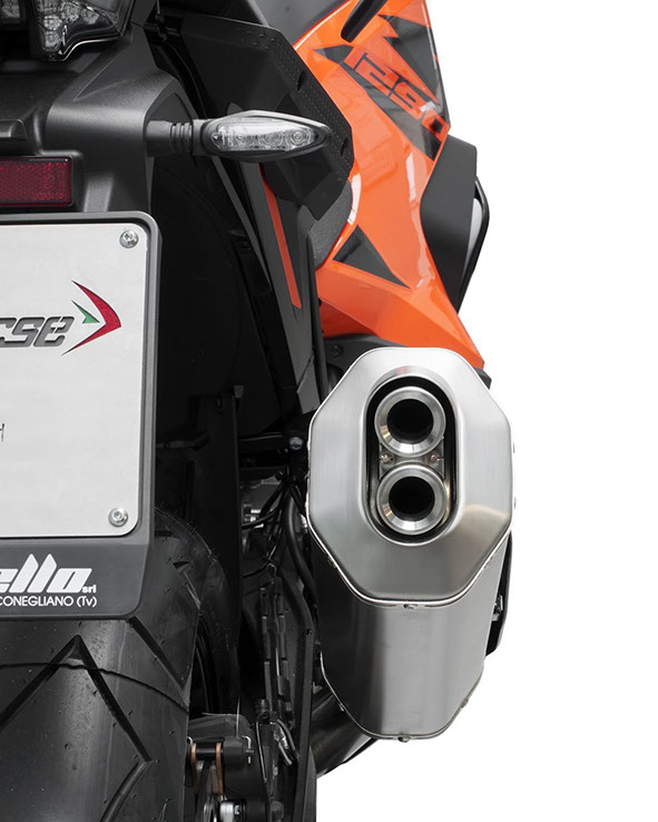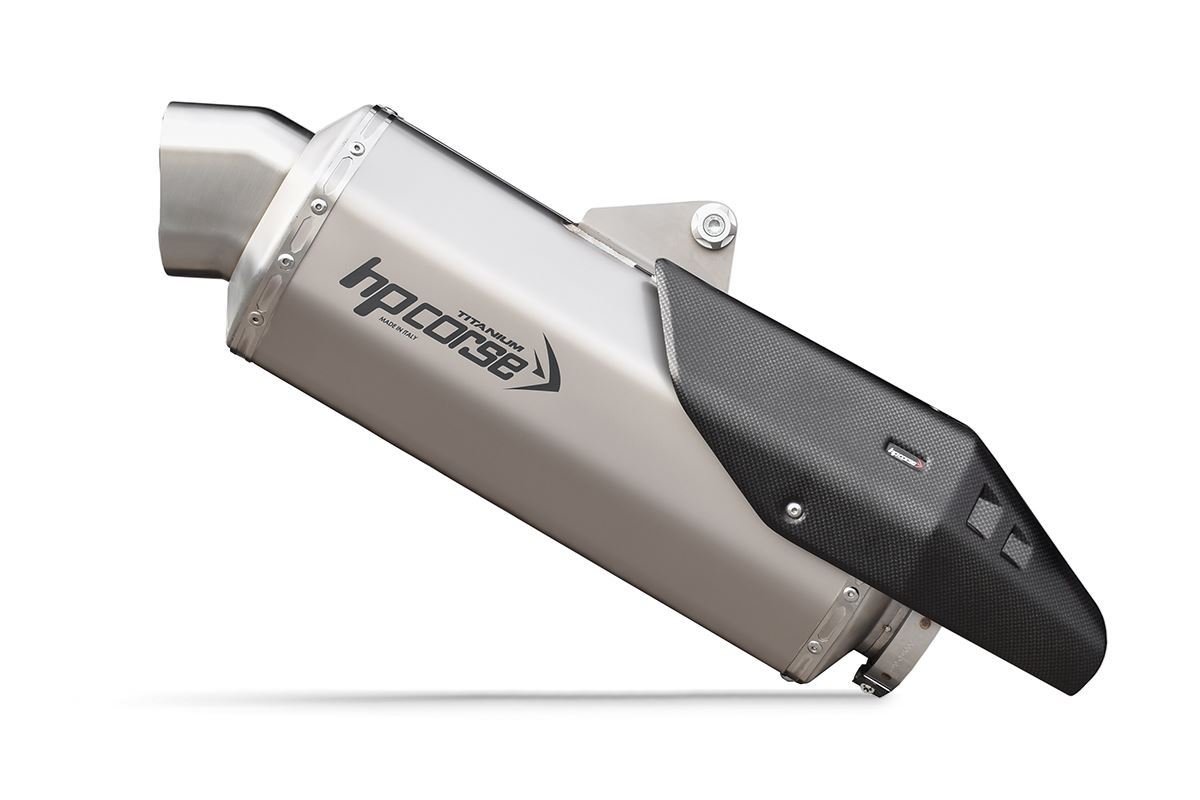 EURO 5承認済みで、標準エキゾーストより2.73kg軽量化され、チタン製のサイレンサーボディにレーザー刻印されたロゴがあり、チタンはナチュラルとブラックセラミック仕上げの両方が利用可能です。