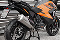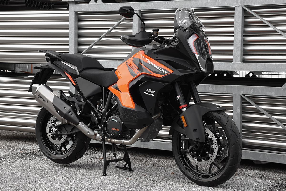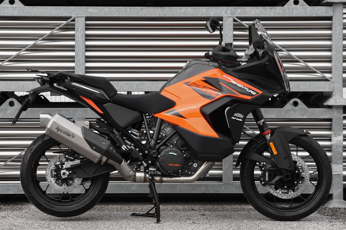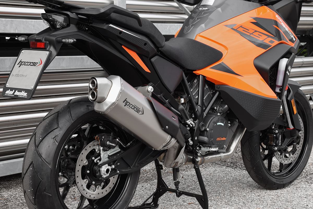 八角形の形状、カーボンカバー、ハイドロフォーム加工されたスパウトにより、オーストリア製エンデューロバイクのリアエンドにラリーキャラクターを与え、パワフルなVツインエンジンもパワーとデリバリーが向上します。