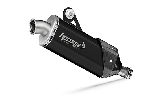 サイレンサー本体にはHP CORSEロゴがレーザー刻印され、ターミナル内側(ホイール側)にホモロゲーションナンバーが記載されています。