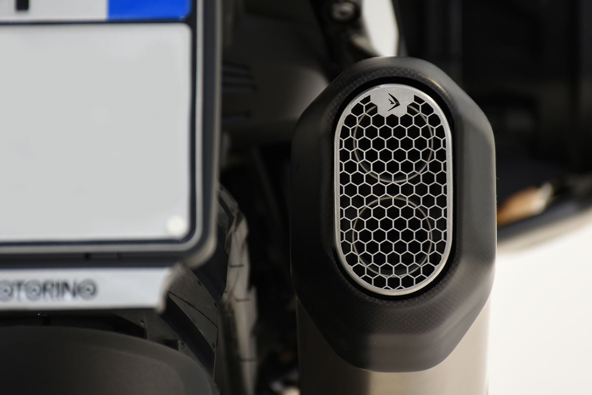 すべてのエキゾーストには、バイクの通常使用中および身体との偶発的な接触の際に、空気力学を改善し、熱から保護するカーボンファイバーカバーが装備されており、より快適なライディングを保証します。