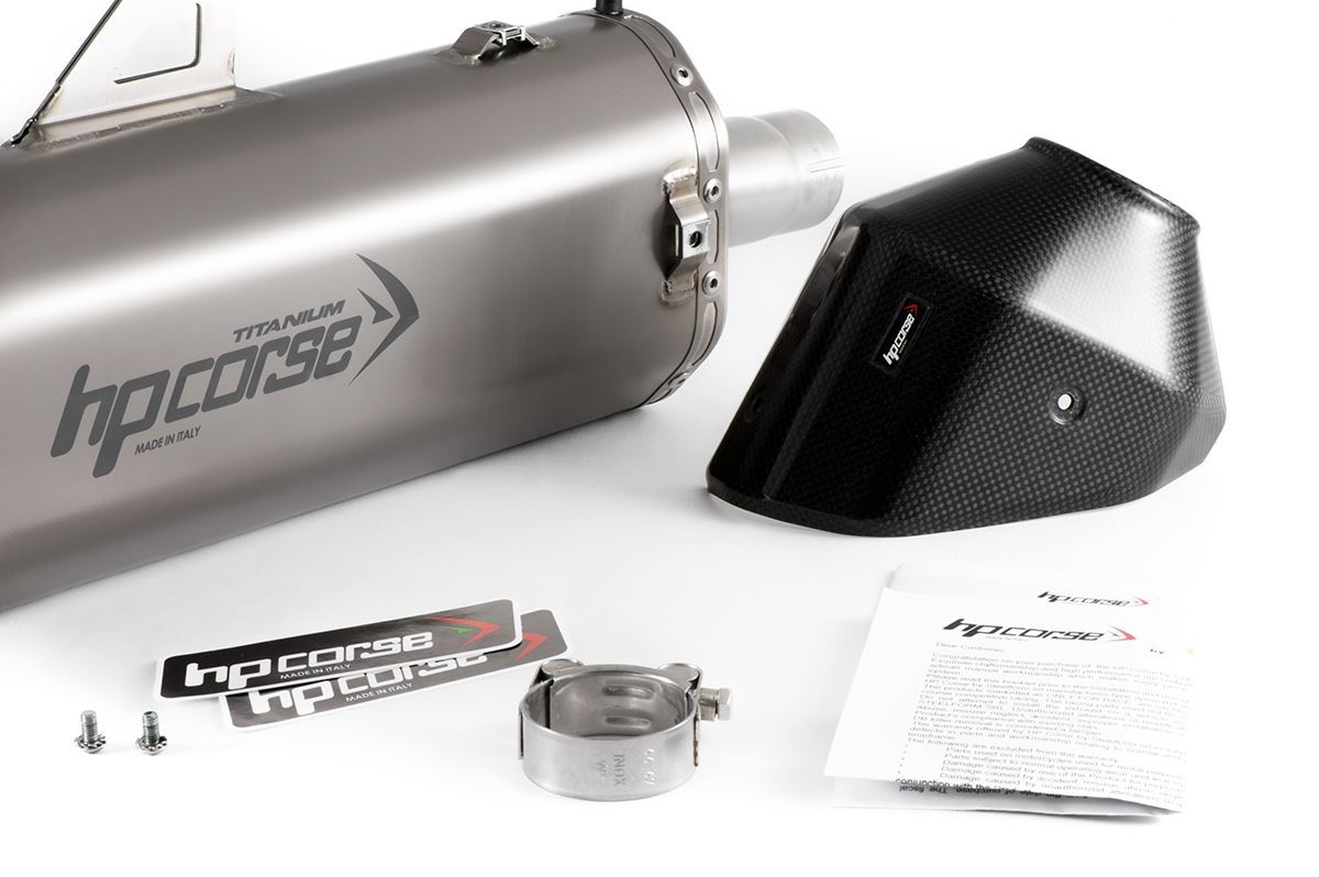 ボローニャR&Dセンターで設計されたHP CORSEエキゾーストは、八角形のボディ形状が特徴で、他に類を見ない美しいカーボンファイバー製テールパイプを備えています。