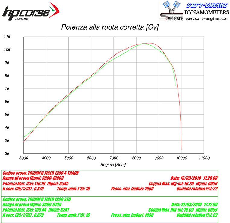 ベンチテストと実走行テストを経て、高い信頼性、オリジナルTriumph製マフラーに比べて軽量化、そしてヒンクレー製3気筒エンジンの性能向上(特に低回転域から中回転域)を実現しました。