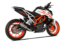 EVOXTREME 260 mm、低パッセージのシングルは、レーシング バージョンで 2 つの異なる素材 (ブラッシュド スチールとブラック スチール) で利用可能で、オリジナルの KTM 390 DUKE コレクターとの接続があり、そのラインで小型車のプロファイルとリアの外観が再設計されています。
