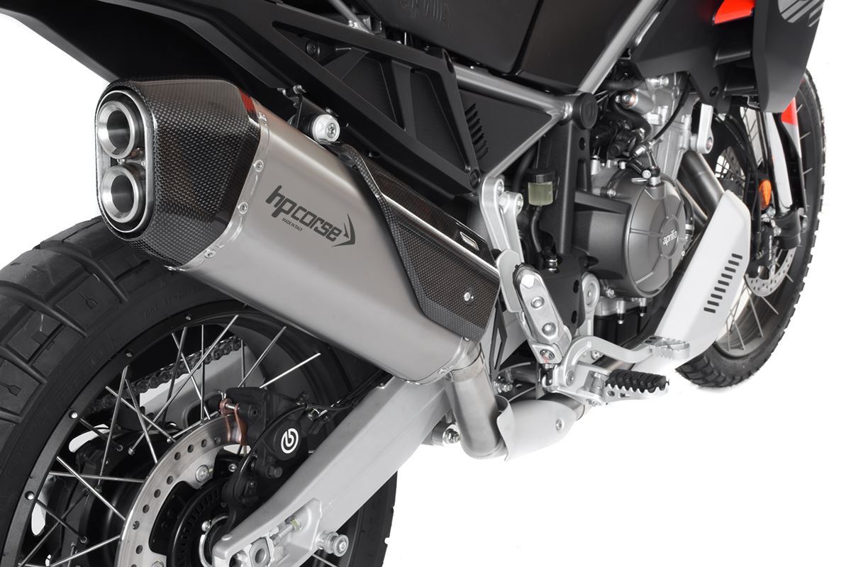 純粋で本質的なライン、長さ 350 mm の八角形のボディ、取り外し可能な db-killer のペアを明らかにするカーボン ファイバー エンド キャップに囲まれたハイドロフォーミング ノズル、アプリリア トゥアレグ 660 と完全に統合されたスリップオンデザイン。