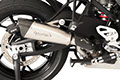 新型EVOXTREMEエキゾーストを極めてエキサイティングなものにする美的特徴の一つは、接続部に向かって細くなるサイレンサーの不規則な形状です。