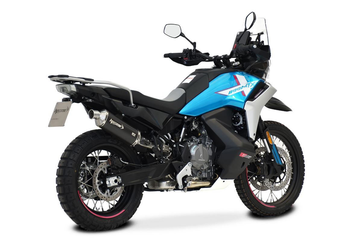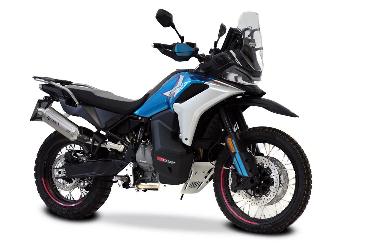 CF Moto 800 MT-X専用に設計されたSP-2エキゾーストは、HP Corseが誇る砂漠ラリーの魂を公道(そしてその先)へと導きます。