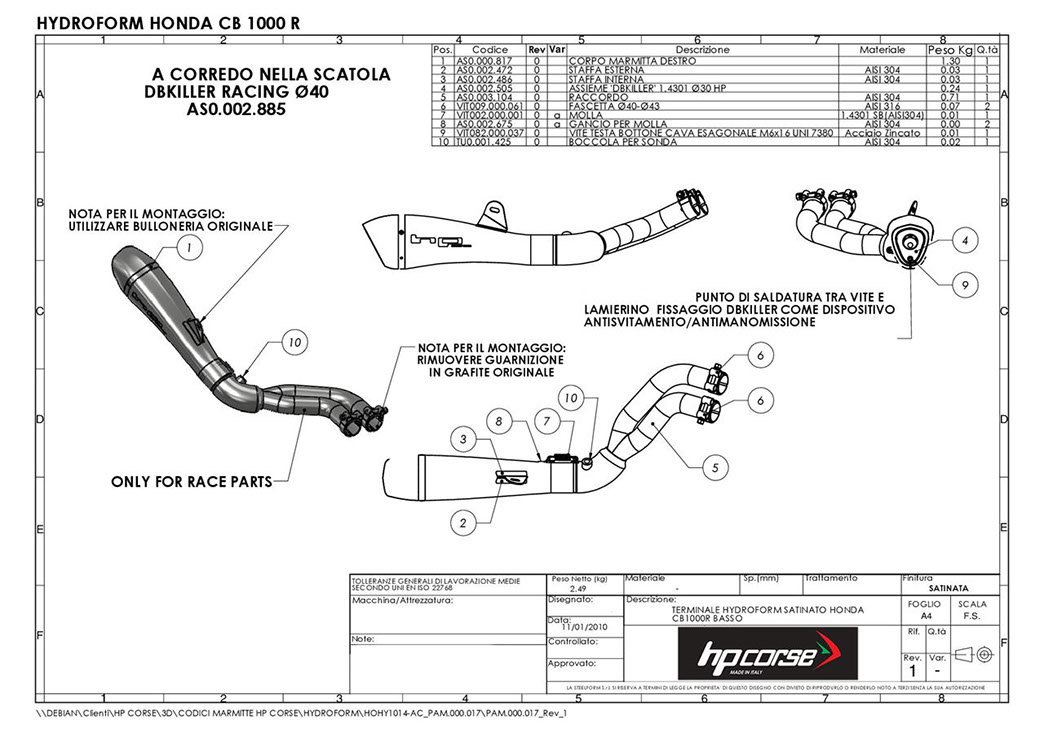 HYDROFORM no cat. with 2 into 1 Racing fitting that eliminates the original catalyst (satin and ceramic black)