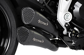 ホモロゲーションされていない (レーシング) ディアベル 1260 用に提案されたものは、元のプライマリ マニホールドを維持し、サテンとブラックのセラミック バージョンの両方で利用可能な HYDROFORM SHORT R デュアル エキゾーストを継続する半完全な 2 対 2 システムです。