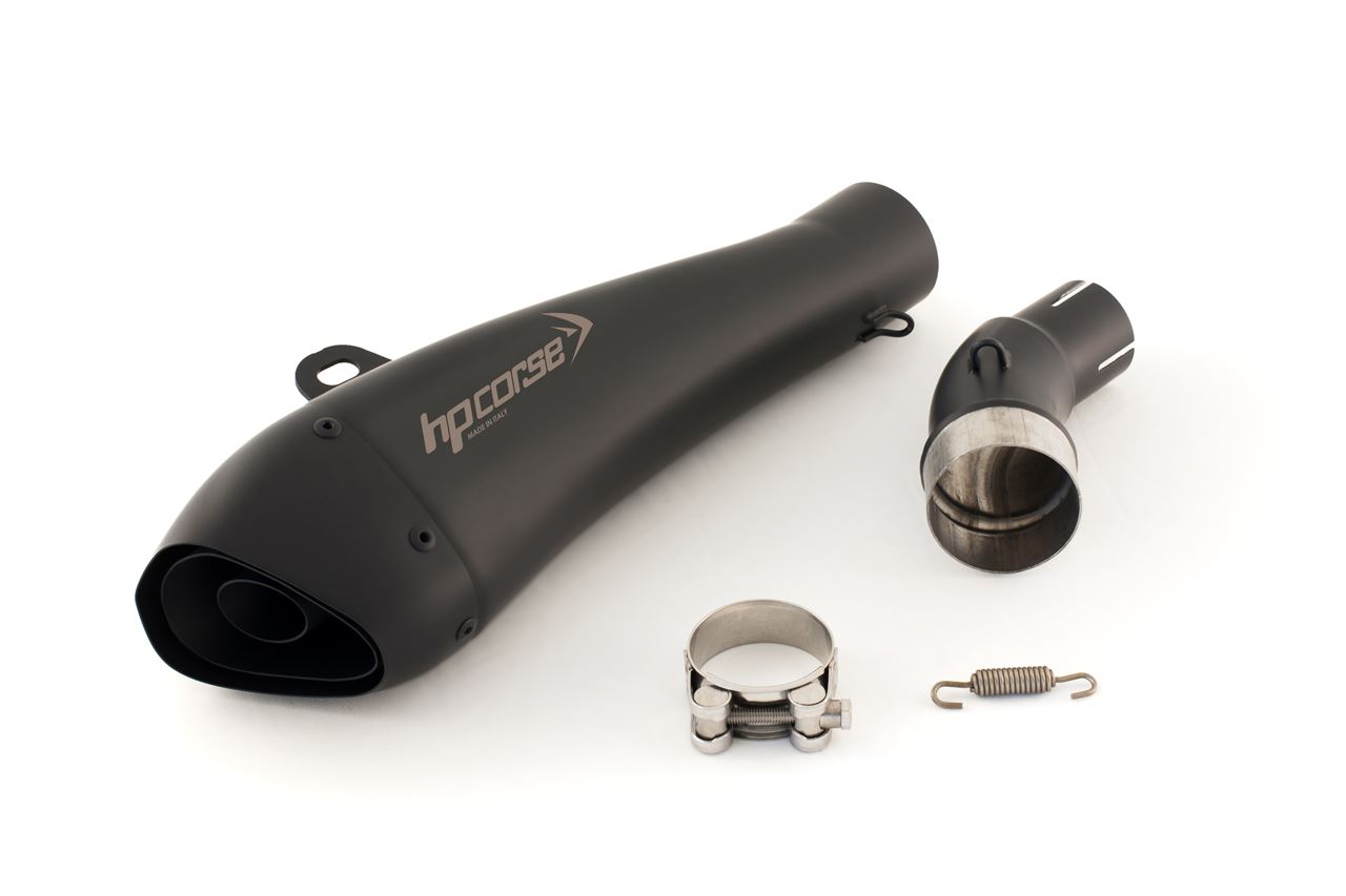 斜めにカットされたカーボンエンドキャップと、まったく新しい「Made in HP CORSE」テクノロジーを使用して得られた可変断面マフラーボディにより、非常に軽量です。