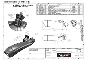 Hydroform homologated (directive 97/24/CE-2006/120/CE cap.9) slip-on single + link pipe for original collectors + db killer racing 40mm - SUZUKI GSX-R 1000 2005-2006