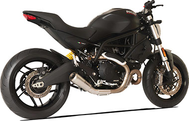 Hydroform Satin single low silencer + spiral link pipe for original DUCATI MONSTER 797 collectors (silencer not homologated RACING)