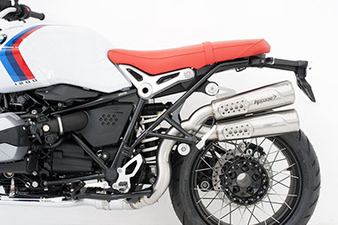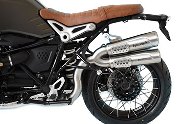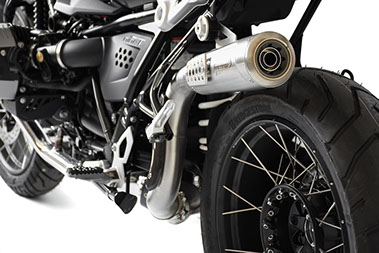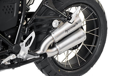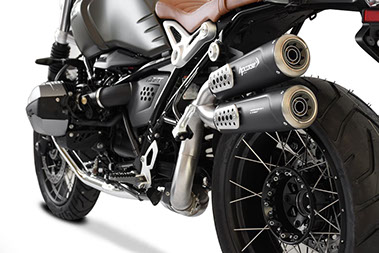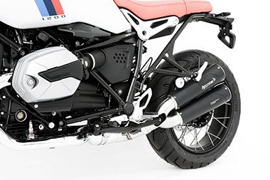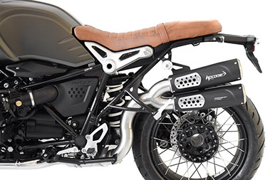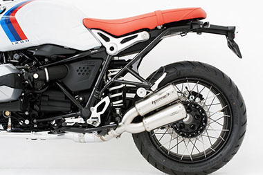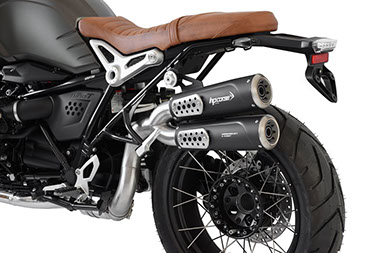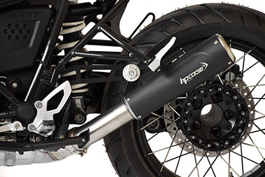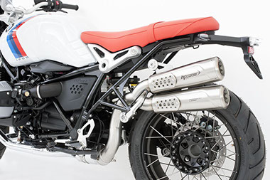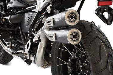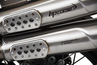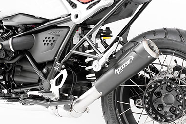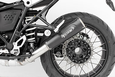 このページに記載されているすべての HP CORSE エキゾーストは、ハイサイレンサー接続の有無に関係なく、すべての BMW R NineT Euro 5 モデルに (キットに付属の専用取り付けブラケットを使用して) 改造することなく取り付けることができます。