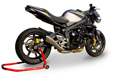 デュアルエキゾーストとスリップオンフィッティングを備えた「HIGH PASSAGE」は、純正マフラーに似た伝統的な装備です。