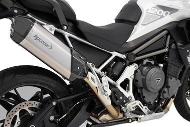 新しい TIGER 1200 には、技術的内容と美的内容の両方で互いに異なる 2 つの排気システム、SP-1 と SPS CARBON を提供します。