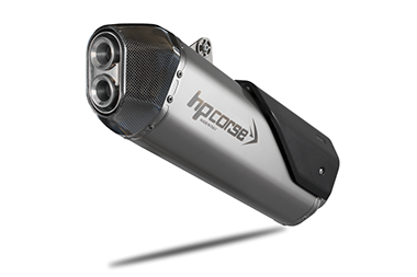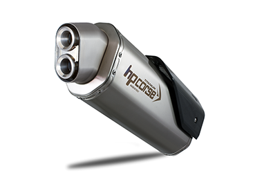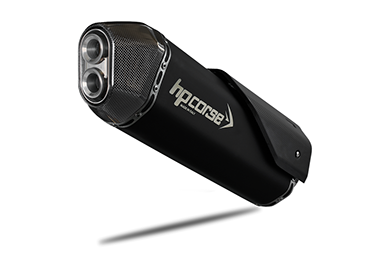 ユーロ 4 承認済み、長さ 400 mm の八角形マフラー ボディ、溶接なしまたはカーボン ファイバー製の液圧成形スパウト、コンポジット製のヒート シールド カバー、レーザーで刻印されたロゴがあります。