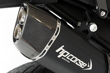 ボローニャの R&D センターで設計された HP CORSE エキゾーストは、真にユニークで美しいカーボン エンド キャップに到達するために八角形のボディ形状をしています。