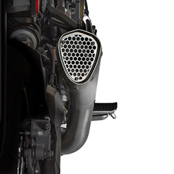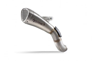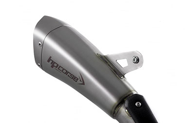 Evoxtreme はレーシング プロファイルとクリーンなデザインのエキゾーストで、不規則な形状のサイレンサー ボディはフィッティングに向かって先細りになっています。