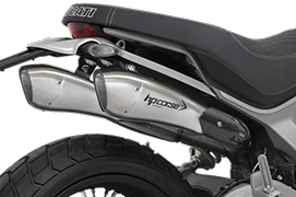 Ducati スクランブラー 1100 には、最新の HP Corse 製品を提供します。取り外し可能な DBK を備えた HYDROFORM-SHORT と、金属メッシュを備えた HYDROFORM CORSA SHORT です。