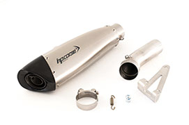 五角形のカーボンファイバー製エンドキャップと、サイレンサーの金属ボディに接する部分に「スラッシュ」カットを施した、非常に軽量で高性能なエキゾーストです。