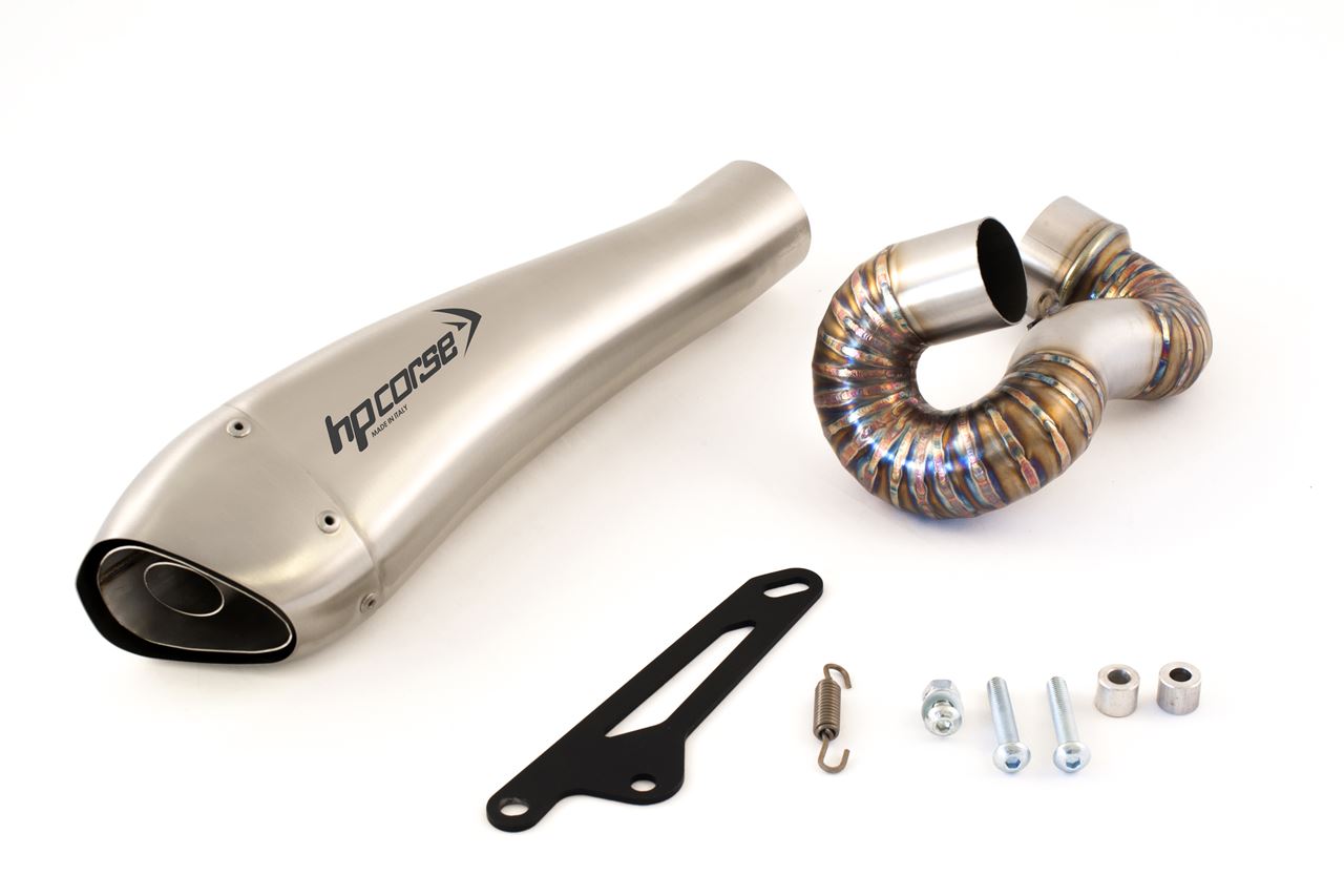 シングルエキゾーストと扇形@スリップオンフィッティングを備えた「LOW PASSAGE」は、TIG技術で完全に手作業で溶接されています。