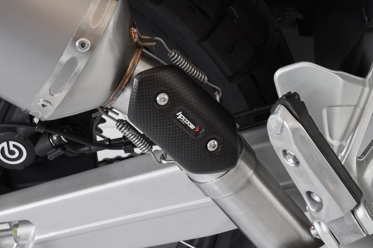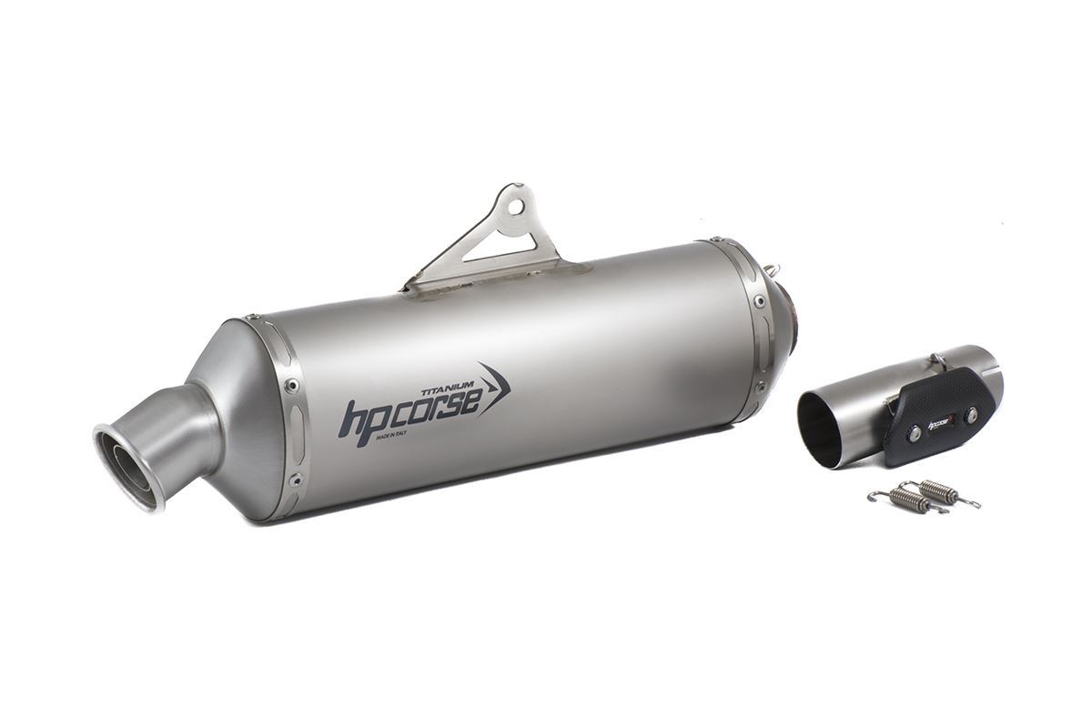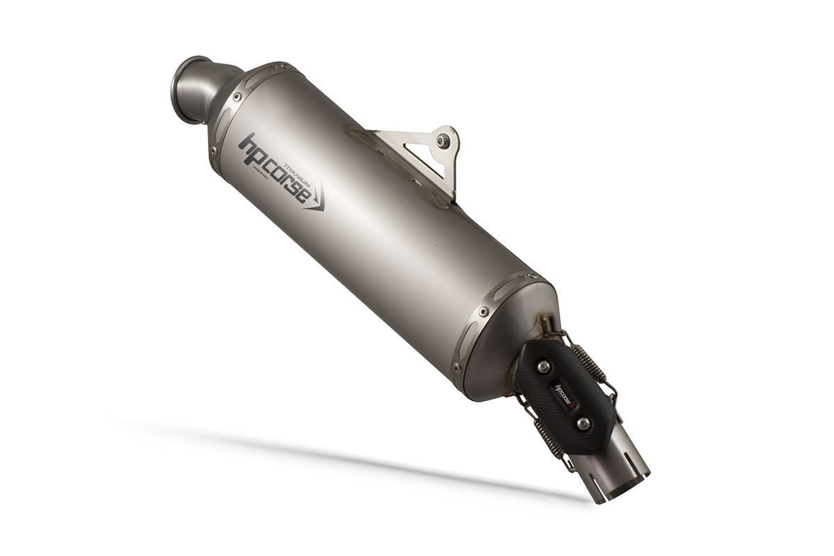 Euro 5 承認済み、手動で TIG 溶接されたサポート ブラケット、ソリッドから機械加工されたフィッティングへのカップリング ブッシング、およびレーザー刻印された Hp CORSE TITANIUM ロゴがあります。