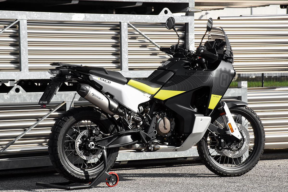 非常に軽量で楕円形、長さ 300 mm のエキゾーストで、Euro 5 認証済み、NORDEN 901 の背面に完璧にフィットします。