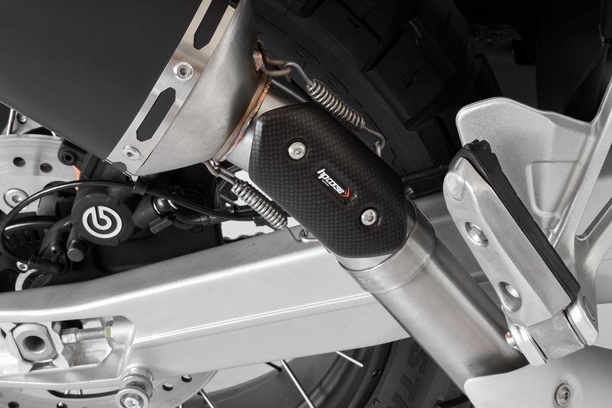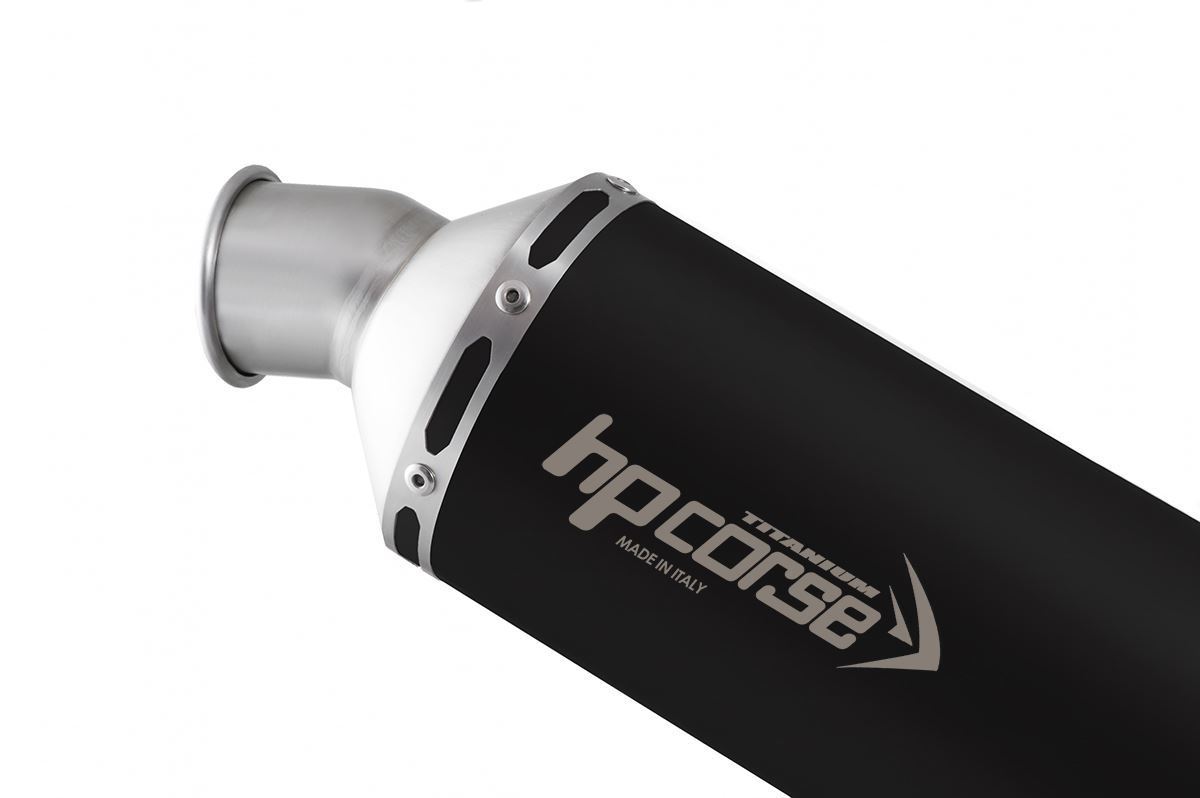 Euro 5 承認済み、手動で TIG 溶接されたサポート ブラケット、ソリッドから機械加工されたフィッティングへのカップリング ブッシング、およびレーザー刻印された Hp CORSE TITANIUM ロゴがあります。