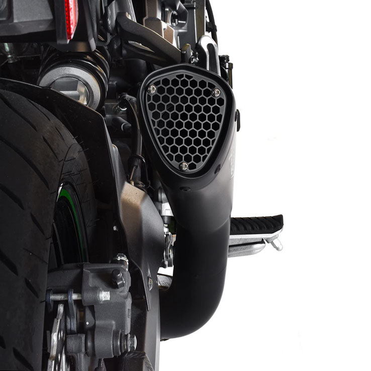 EURO 4 と EURO 5 の承認済み. ケーシングはサテンまたはブラックセラミック仕上げの特殊なステンレス鋼で作られ、排気ガス出口部分に金属製のグリルを収容する底部は、よりアグレッシブな外観を与えます.