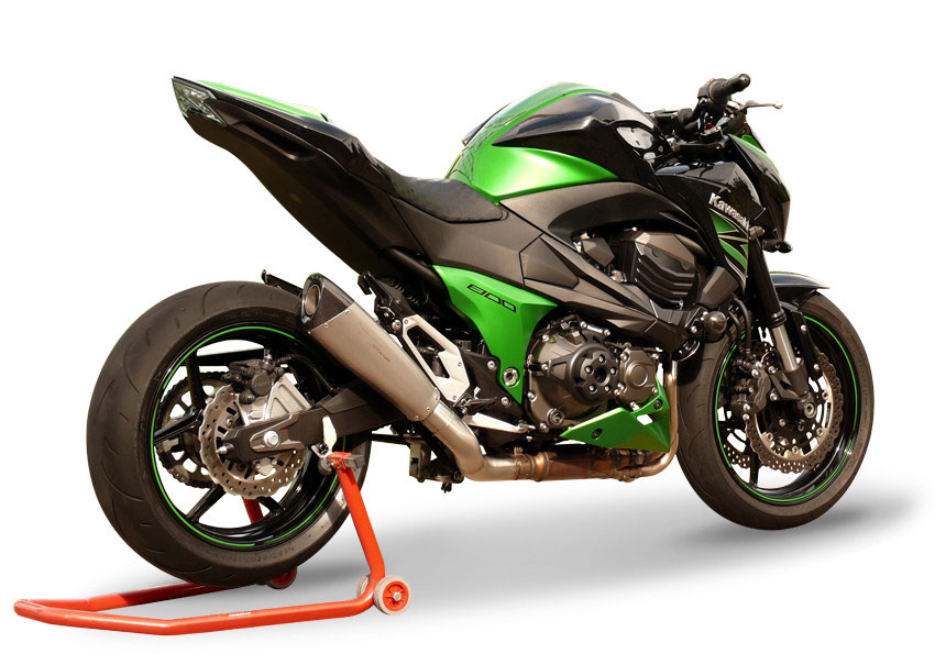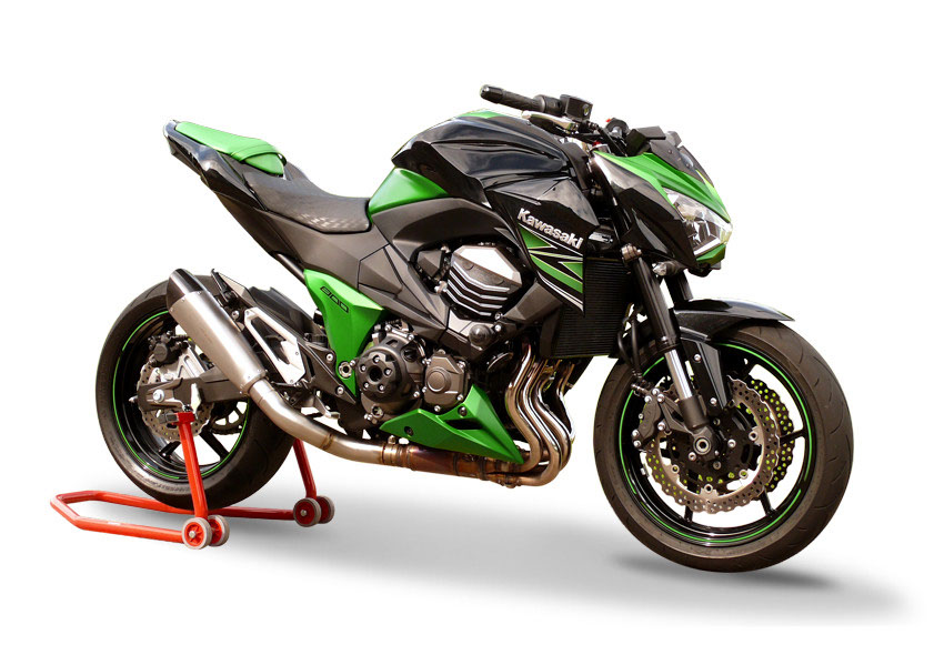 Evoxtreme Satin single low exhaust (310mm line with carbon end cap) + link pipe for KAWASAKI Z800E original collectors (Exhaust homologated according to directive 97/24/CE-2006/120/CE cap.9)
