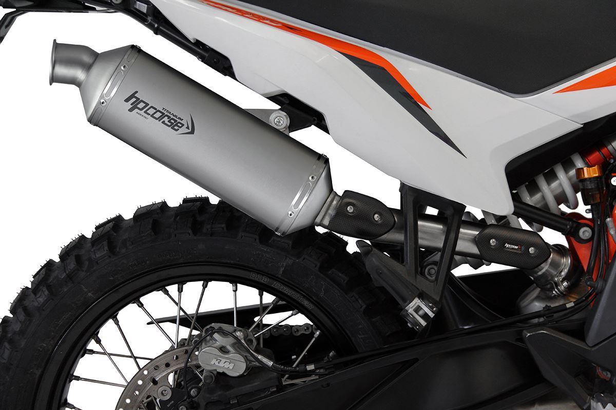 長さ 300 mm、厚さ 0.8 mm のチタン シャツで作られた手作りのエキゾーストは、非常に軽量で、90 x 120 mm の楕円形のセクションを持ち、傾斜角度で溶接されていない丸い最終スパウトを備え、「アドベンチャー」の後部をスリムにすることができます。
