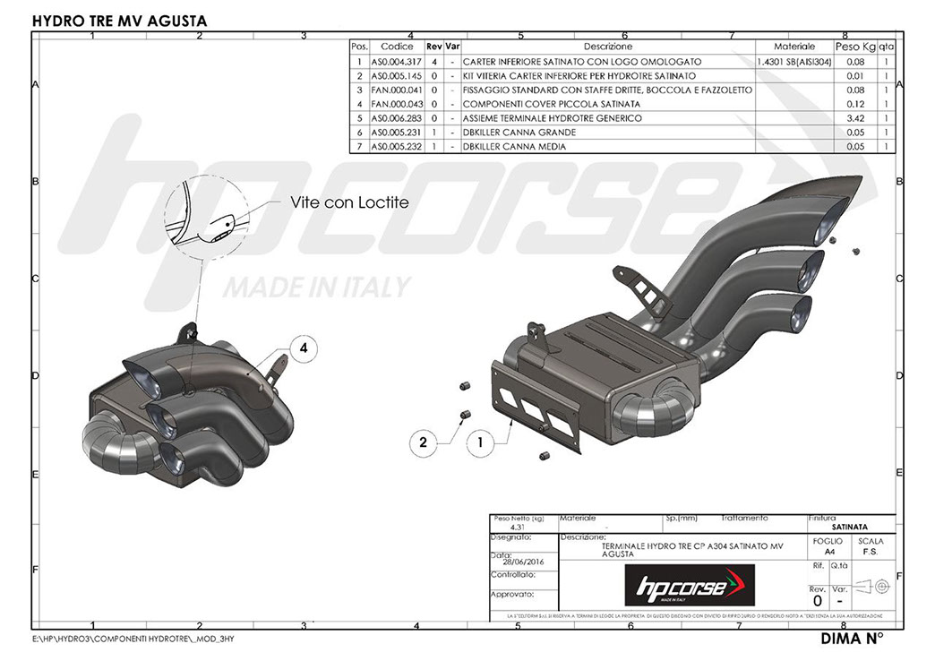 HydroTre Satin Exhaust (with Large Carbon Cover) (with Lower Carter in Satin Steel) MV AGUSTA RIVALE (Exhaust approved according to directive 97/24/CE-2006/120/CE cap.9)