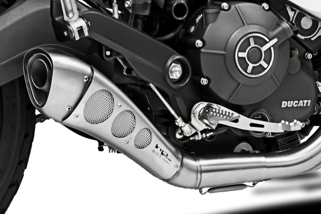 サイズの異なる3つの穴とメッシュを備えたカバーを装備したHYDROCLASSICエキゾーストは、ライブとレーシングの外観を同時に備えています。