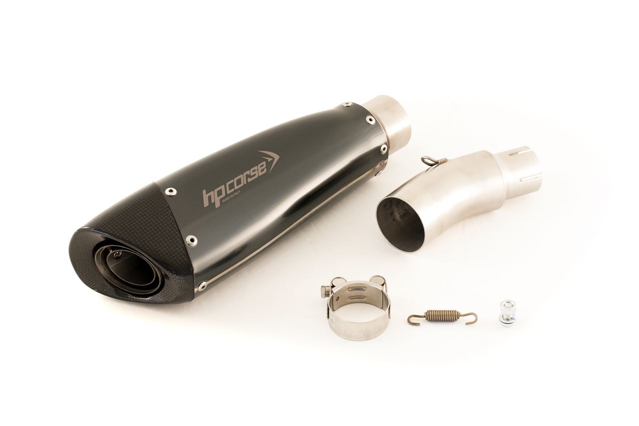Evoxtreme Satin black single low (310 mm line with carbon end cap) + link pipe for original collectors - TRIUMPH STREET TRIPLE 2013-2015 (Exhaust homologated according to directive 97/24/CE-2006/120/CE cap.9)