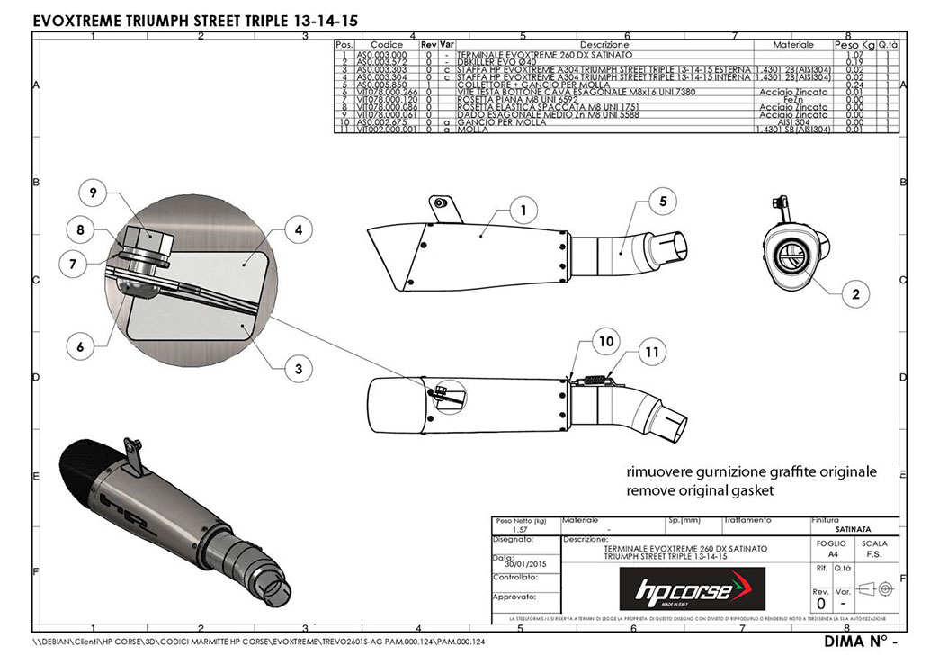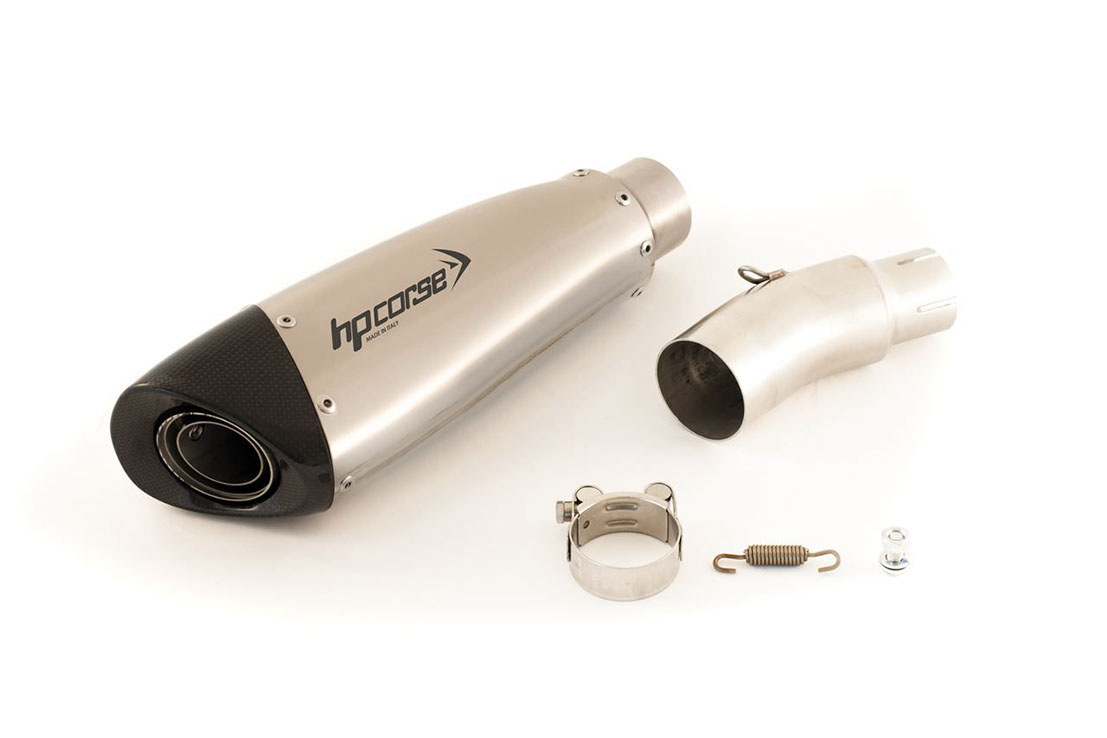 Evoxtreme Satin single low (310 mm line with carbon end cap) + link pipe for original TRIUMPH STREET TRIPLE '13-'15 collectors (Exhaust homologated according to directive 97/24/CE-2006/120/CE cap.9)