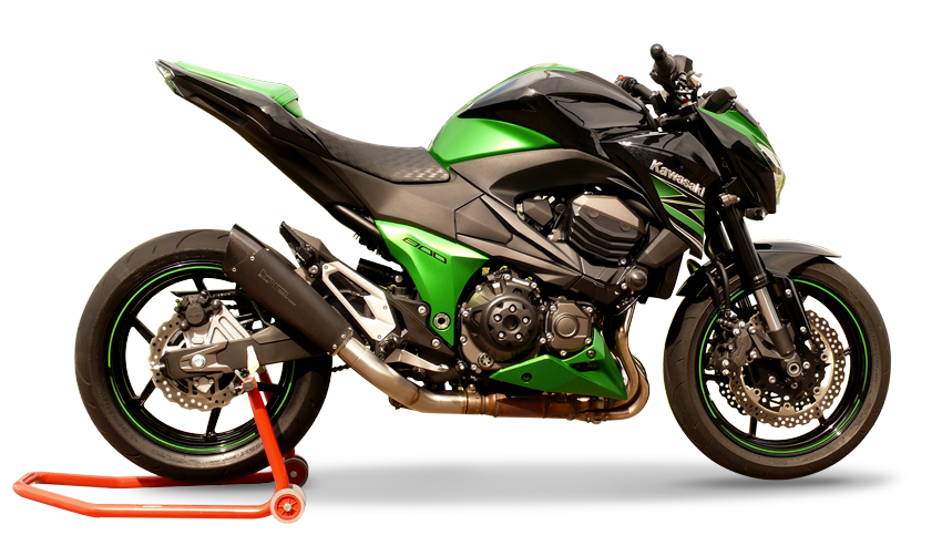 Silencer Evoxtreme Nero singolo basso (linea da 310mm con fondello in carbonio) + raccordo per collettori originali KAWASAKI Z800E (Terminale omologato secondo la direttiva 97/24/CE-2006/120/CE cap.9)